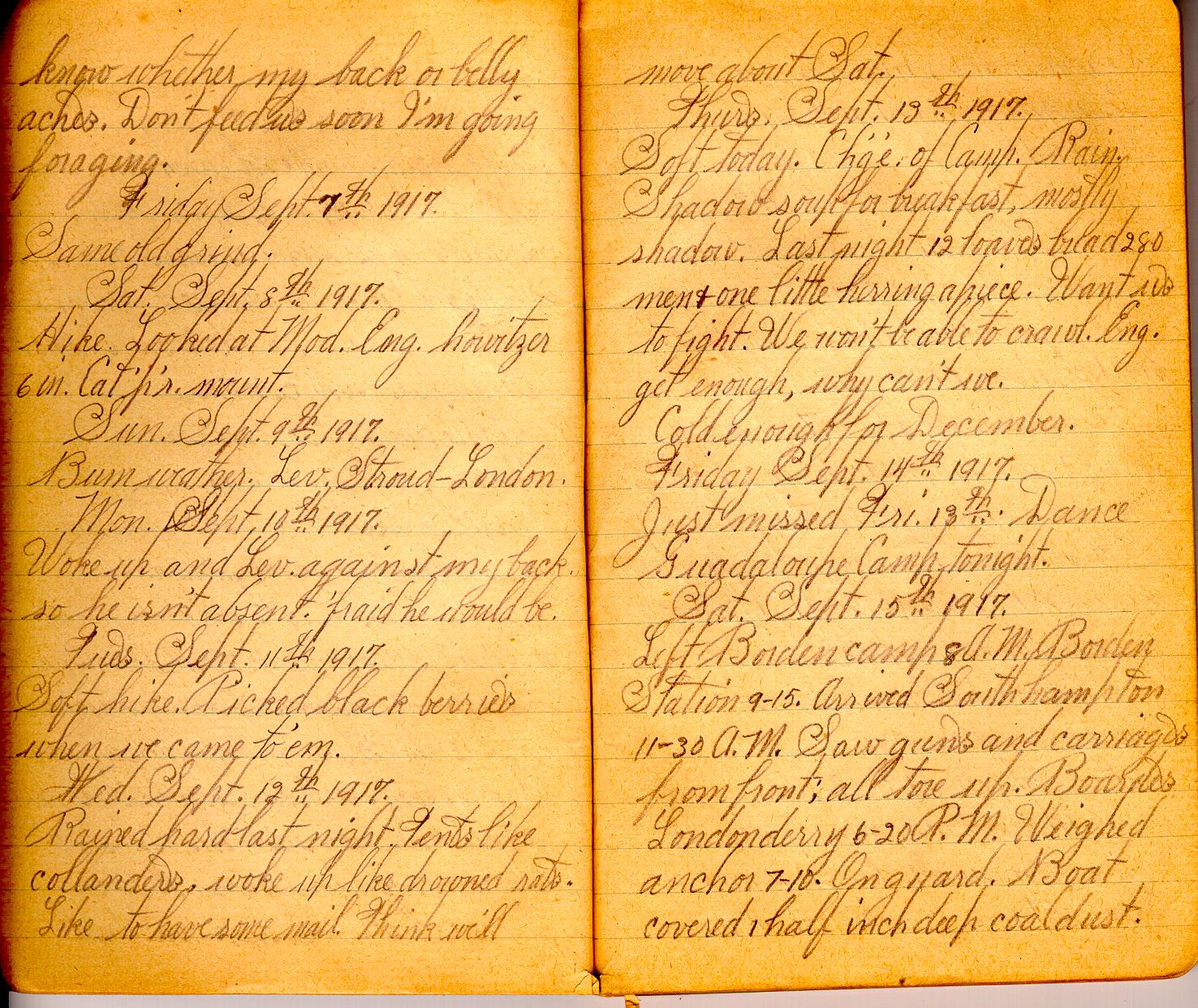 Left Borden camp 8 A.M. Borden Station 9-15. Arrived Southhampton