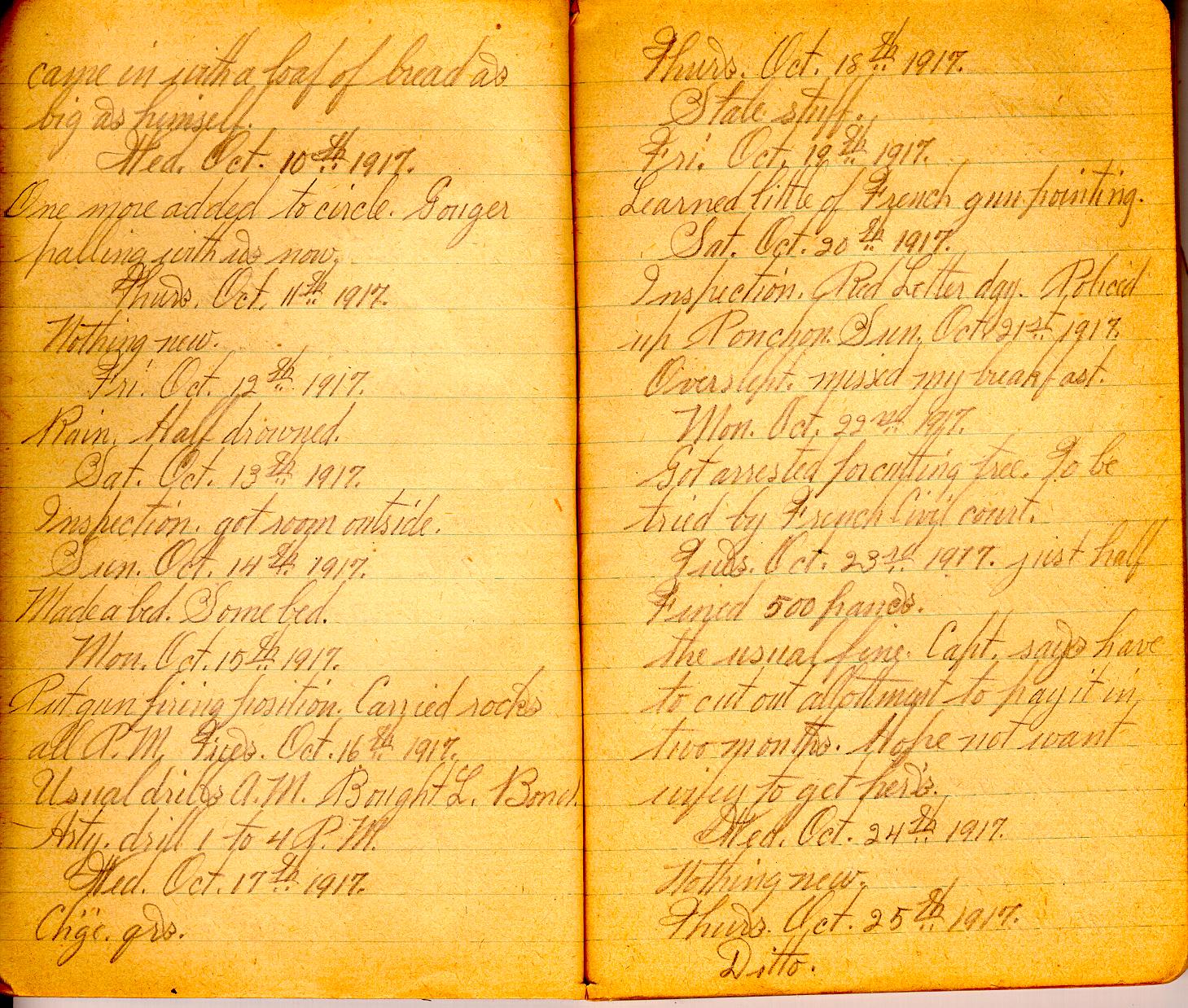 Usual drills A.M. Bought L. Bond. (Liberty Bond ?) Arty. drill 1